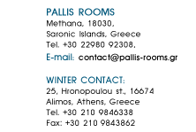 Pallis Rooms is a traditional resort located in the northeast tip of Methana Peninsula. The resort is situated on a unique and quiet location two meters away form the coast.